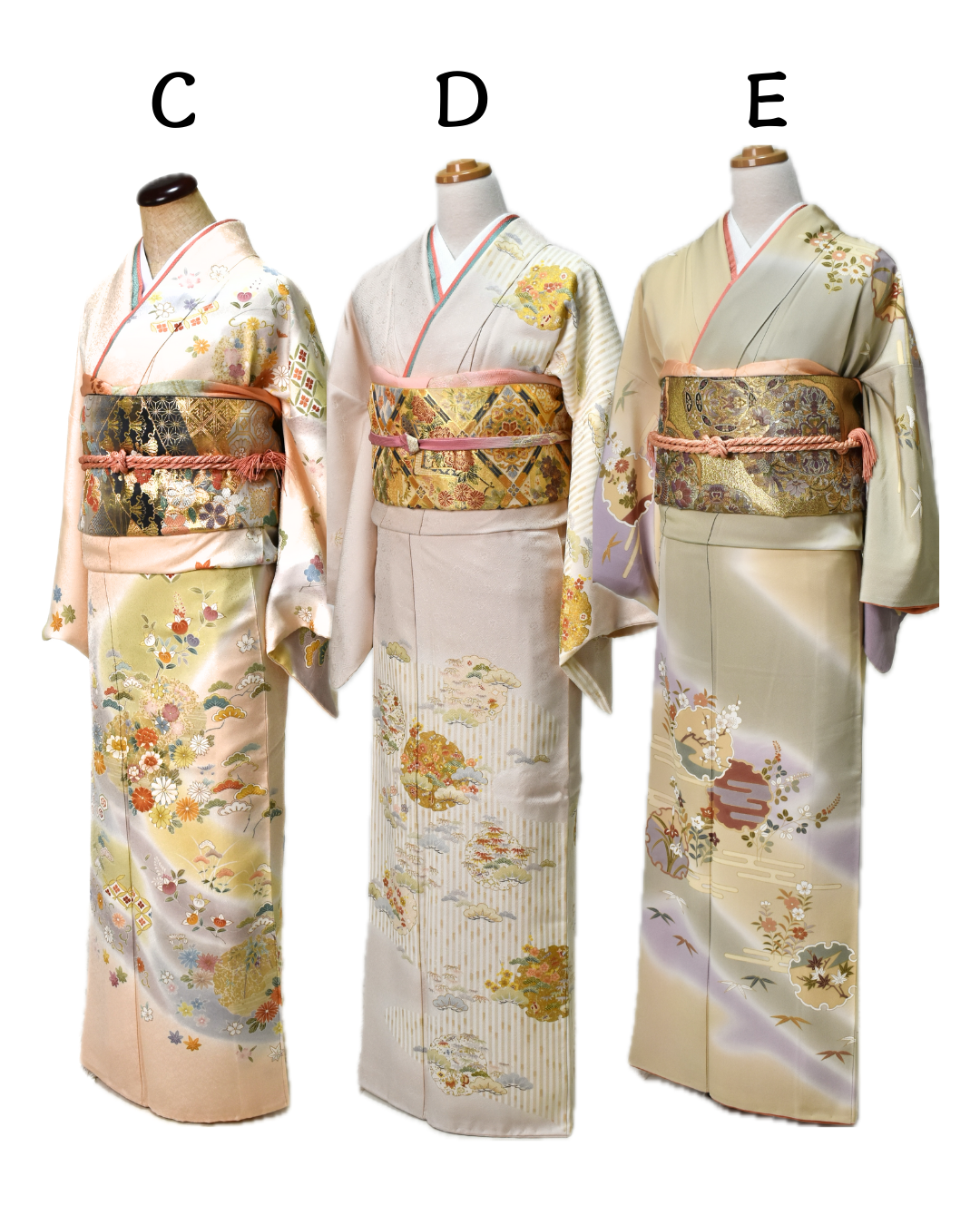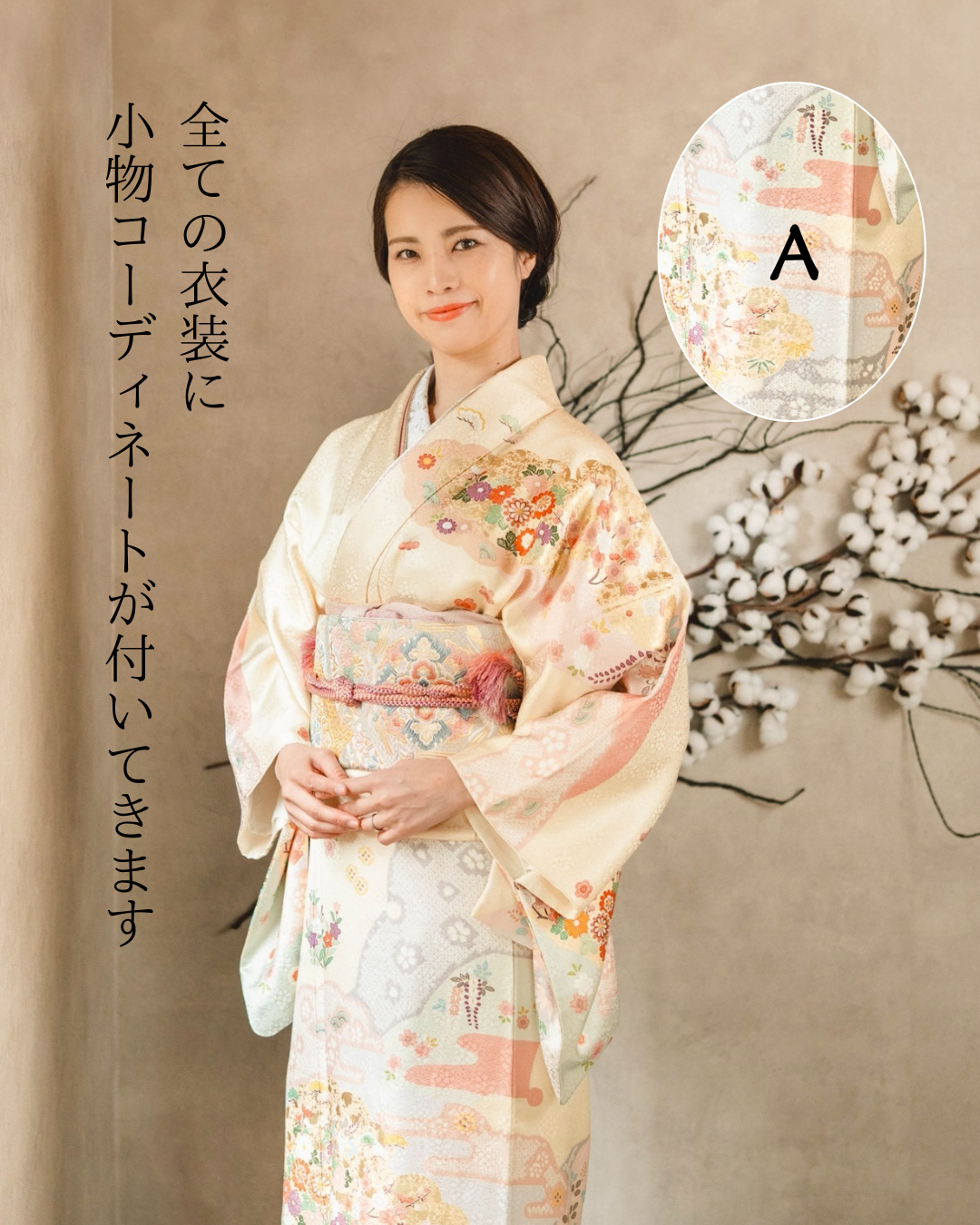 撮影にふさわしい上質な訪問着を、プロのスタイリストによる着付け・ヘアセット込みでご利用いただけるお得なセットプランをご用意しております。